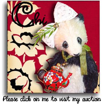 Mei, a handmade mohair artist Panda Bear, available for adoption on Ebay  from Denise Purrington